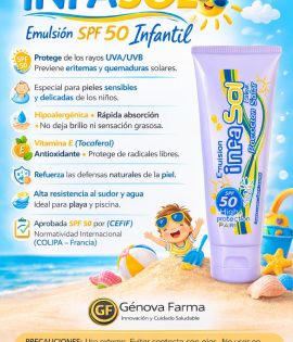 Protector solar que protege tu piel por mas tiempo, suave y no graso al tacto. Emulsión SPF 50 protección intensa infantil. Para la delicada piel de cuerpo y rostro del niño. Su combinación de filtros y antioxidantes provee una capa protectora contra los rayos UVA y UVB. NSOC56023-13CO.